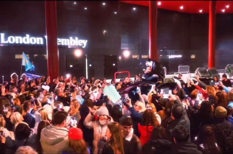 «Бұл видео концерттен кейін біз тоқтаған қонақүйдің алдында түсірілді. Барлығына алғыс айту үшін көлік төбесіне шығуға тура келді», — деп жазылған видеоға.